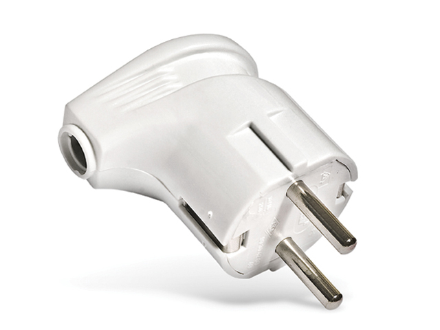 Вилка угловая (с/з, 16А, 250В) белая, UNIVersal (с заземлением) (А105)