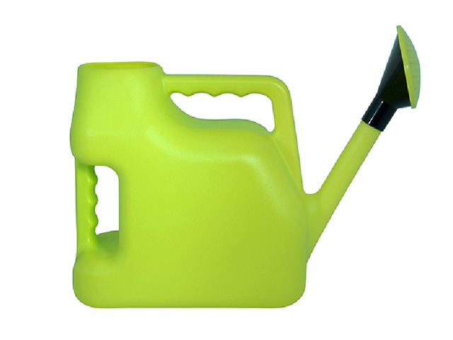 Лейка имеет удлинённый носик, насадку и две широкие рельефные ручки, за которые удобно держать.