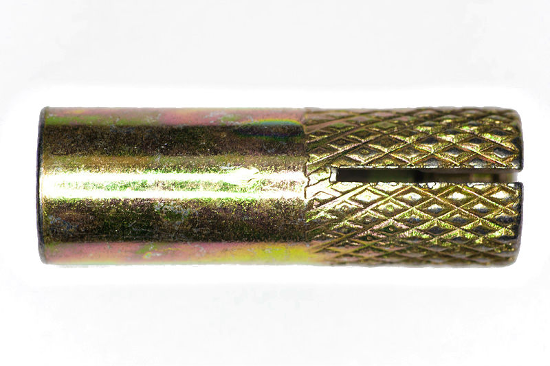 Анкер имеет отверстие с одной стороны, а с другой — расширяемую часть.