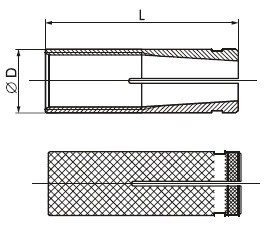 Латунная цанга (анкер) – это цилиндр с внутренней резьбой и распорной зоной, состоящей из четырех сегментов. Внутренняя резьбовая часть цилиндра имеет форму конуса. Насечки с внешней стороны цилиндра предотвращают проворачивание латунного анкера в отверстии.