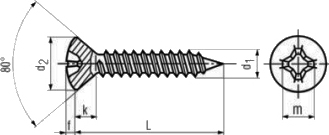 Особенности конструкции: головка полупотайная, шлиц крестообразный Phillips, наконечник острый.
