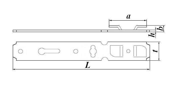 | Размер | L, длина, мм | t, ширина, мм | a, расстояние между «усами» | h, толщина, мм |