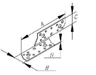 | Размер A-B-C | Длина A | Ширина полки B | Ширина полки C | Толщина металла H |