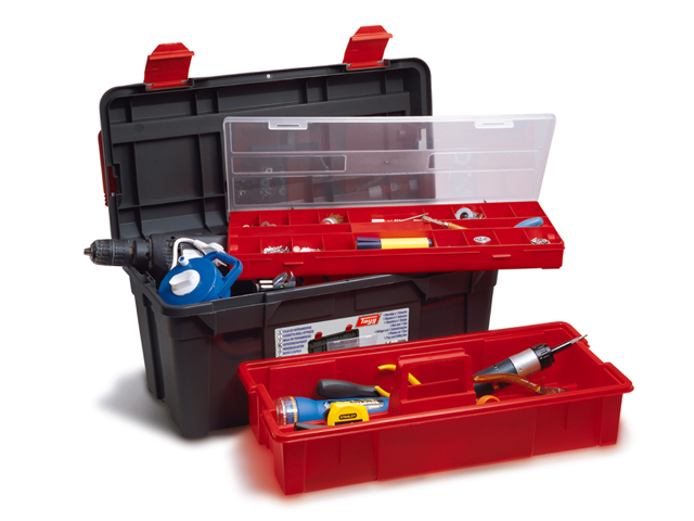 Инструментальный ящик всемирно известной фирмы TAYG. Одновременно прочный и гибкий пластик уверенно противостоит внешним нагрузкам. Данная модель комплектуется лотком и органайзером для мелких деталей, которые помогают оптимально организовать внутренние пространство.