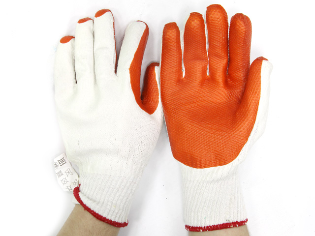 Покрытие ладони:латекс. Бесшовная, трикотажный манжет с окантовкой, основа - хлопчатобумажный трикотаж.