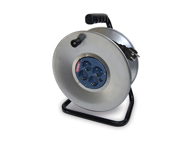 Удлинитель на катушке 30м (4 роз., 3.7кВт, метал. катушка, з/к, ПВС) Союз (3,7кВт; провод 3х1мм2; з/к - с заземляющим контактом) (482S-4373)
