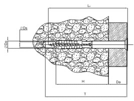 | Размеры (D x L) | Do, мм | Ds, мм | Da, мм | T, мм | H, мм | Мин. вырывающая сила, kH |