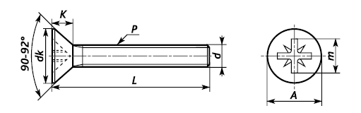 Винт с метрической резьбой и потайной головкой с крестообразным шлицем, нержавеющая сталь.