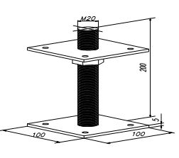 Состоит из двух оцинкованных стальных площадок, оцинкованной шпильки с резьбой М20, М24 и соответствующей гайкой.