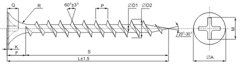 Потайная головка, крестообразный шлиц Philips № 2, острый наконечник с крупным шагом, оксидированные.