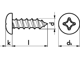 Особенности конструкции: головка цилиндрическая с полусферой, шлиц крестообразный Phillips, наконечник острый.