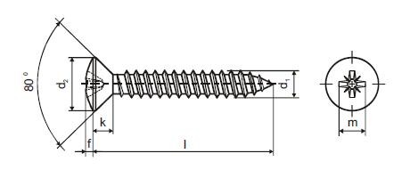 DIN 7983 Саморез-шуруп (винт самонарезающий) с полупотайной головкой для тонких металлических листов, крестообразный шлиц Ph, полная резьба, форма С - заострен.