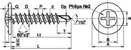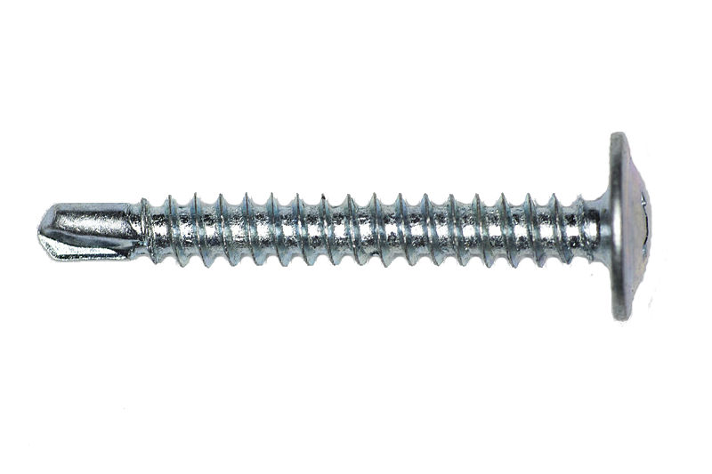 Головка полусферическая с пресс-шайбой, шлиц Philips No2, частая резьба, наконечник сверло, белый цинк.