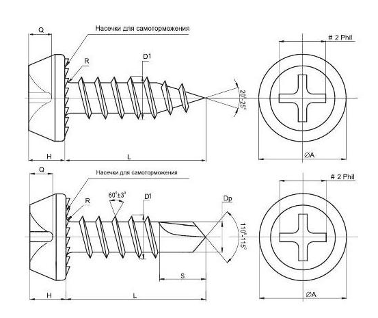 Головка полуциллиндрическая, шлиц Philips No2, сверло/острый, фосфат/цинк.