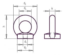 | Обозначение | D2, мм | D3, мм | D4, мм | h, мм | k, мм |