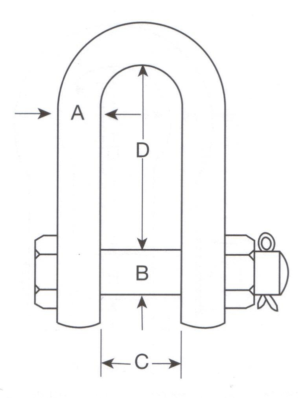 Стальная соединительная скоба для всех типов канатов и цепей. Размер определяется по диаметру поперечного сечения пальца.