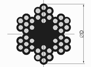 Состоит из высокопрочной проволоки и сердечника. Проволоку обвивают вокруг сердечника и получаю прядь, пряди в свою очередь тоже обвивают вокруг сердечника и получают трос.