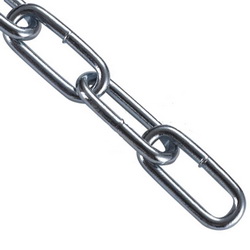 Цепь стальная общего назначения, оцинкованная. Применяется в качестве растяжки. Не выносит ударных нагрузок.